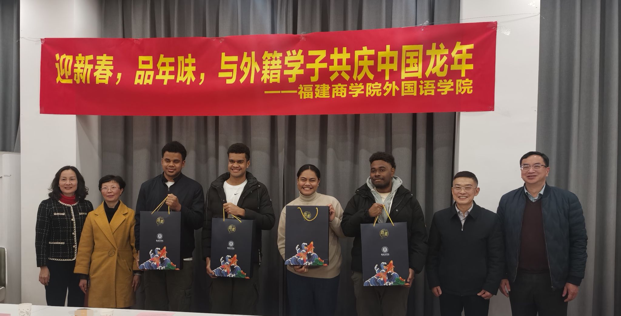 2月7日下午,BV伟德官方网站举办“迎新春,品年味,共庆中国龙年”留学生新春座谈会。校党委书记吴访益、校党委副书记蒲文庆、副校长林文艺,教务处、学工部、BV伟德官方网站有关负责人以及留学生代表欢聚一堂,喜迎新春。