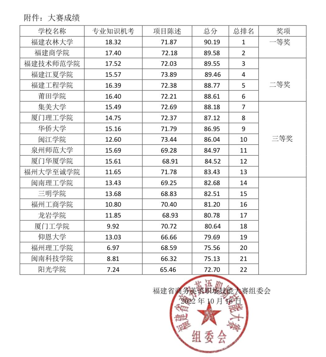 由福建省教育厅主办的2022年“亿学杯”福建省商务英语职场技能大赛于2022年10月16日落幕。经过专业知识机考、项目英文陈述、在线问答三个环节的激烈比拼,我校BV伟德官方网站商务英语专业饶丽、姚家煌、郑梦婷、曾洲桐、张静茹、李嘉莉、肖莹、陈宇璐八位同学所组成的Spark X参赛代表队(指导老师:江盈盈、柯佳音)从全省22支参赛队伍中脱颖而出,荣获一等奖,是我校在该赛事中取得的最好成绩。