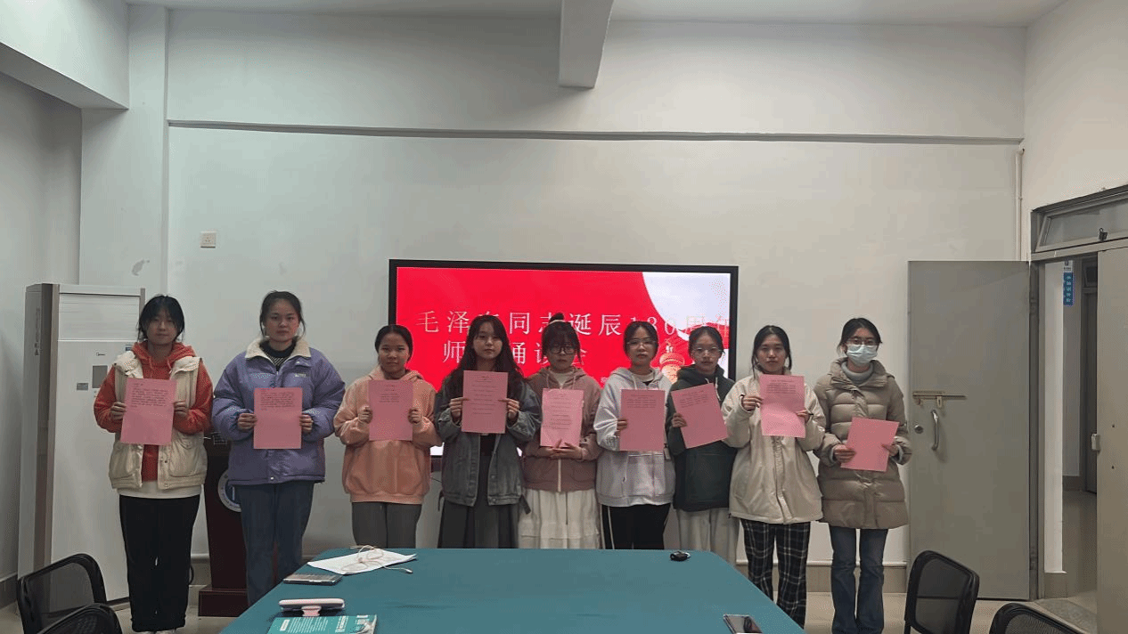 1月7日晚,BV伟德官方网站习近平新时代中国特色社会主义思想读书社在聚贤楼410举办纪念毛泽东同志诞辰130周年师生诵读会。读书社全体成员参加了此次活动。