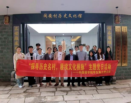 为深入学习贯彻习近平文化思想,加强对文化遗产的保护传承,更好地弘扬中华优秀传统文化,5月13日,BV伟德官方网站学生第三党支部在学院党委副书记杨爱娥的带领下,前往马尾区亭江镇闽安村开展“探寻历史名村,赓续文化根脉”主题党日活动。本次活动得到闽安村党支部的大力支持,村党支部书记吴明奋、马尾区历史文化宣讲员、“福州好人”池秋荣等参加本次活动。