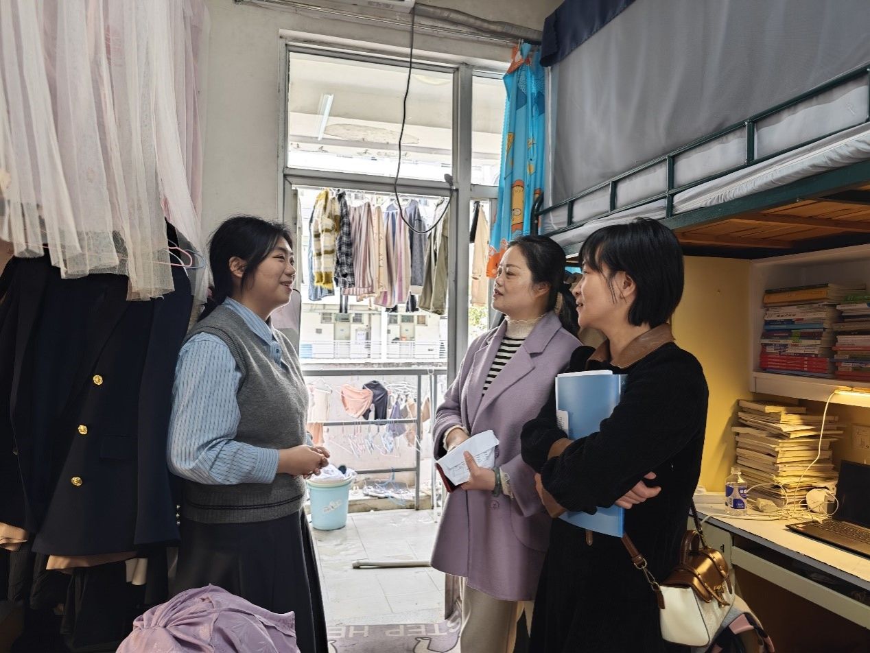2024年3月27日,伟德官网党委副书记杨爱娥带领辅导员、自律会学生干部走进学生宿舍,进行实地走访调研,深入了解同学们的生活环境和学习状态,给同学们送去关怀和问候。