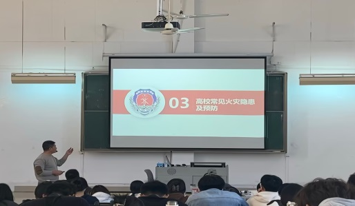 本次活动主题分为主题讲座和消防疏散演练两部分。讲座上,学校安全保卫处副处长周建成就火灾隐患、灭火操作、预防措施进行理论宣讲,通过播放安全教育视频与有奖问答等趣味环节强化同学们的消防安全意识。他强调,大学生应牢牢掌握消防安全基本知识,提升消防安全防范能力和消防事故处置技能,将所学消防安全知识运用到日常学习、生活中去,提高警觉意识,防患于未然,共同维护社区、校园消防安全。