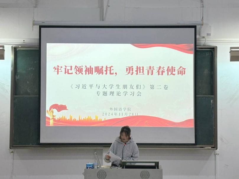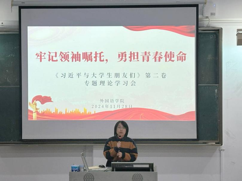 为深入学习贯彻习近平新时代中国特色社会主义思想,进一步激发广大团员青年的责任感和使命感,11月28日,BV伟德官方网站于澳洲厅开展主题“牢记领袖嘱托,勇担青春使命”专题理论学习会。本次学习会主要学习《习近平与大学生朋友们》第二卷,学院团委书记翁云星老师、团委学生干部代表及各年级团员代表参与本次学习。