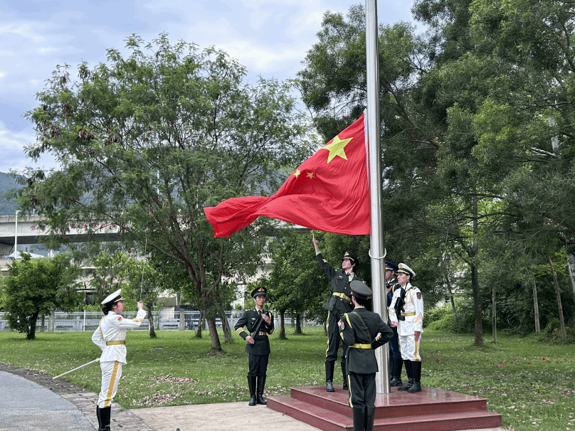 晨光初露,国旗护卫队步履铿锵,护送五星红旗入场。伴随着激昂雄壮的国歌,五星红旗冉冉升起,全体师生庄严肃立,向国旗行注目礼。学生代表陈增带领在场同学共同学习了习近平总书记五四重要回信精神,深刻感受党中央对新时代青年的深切关怀和殷切希望。她号召全体同学以五四精神为指引,聚焦国家发展所需、社会进步所盼,到西部去、到基层去、祖国和人民最需要的地方去,为中国式现代化建设贡献青春力量。