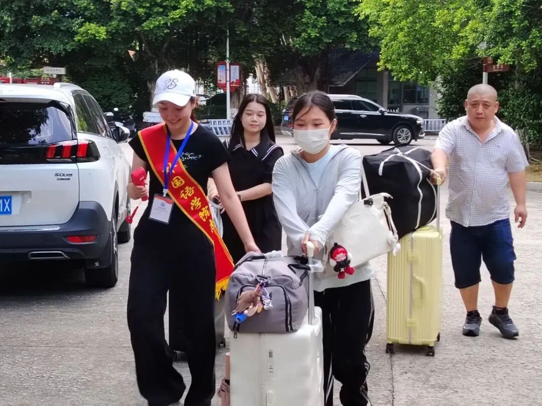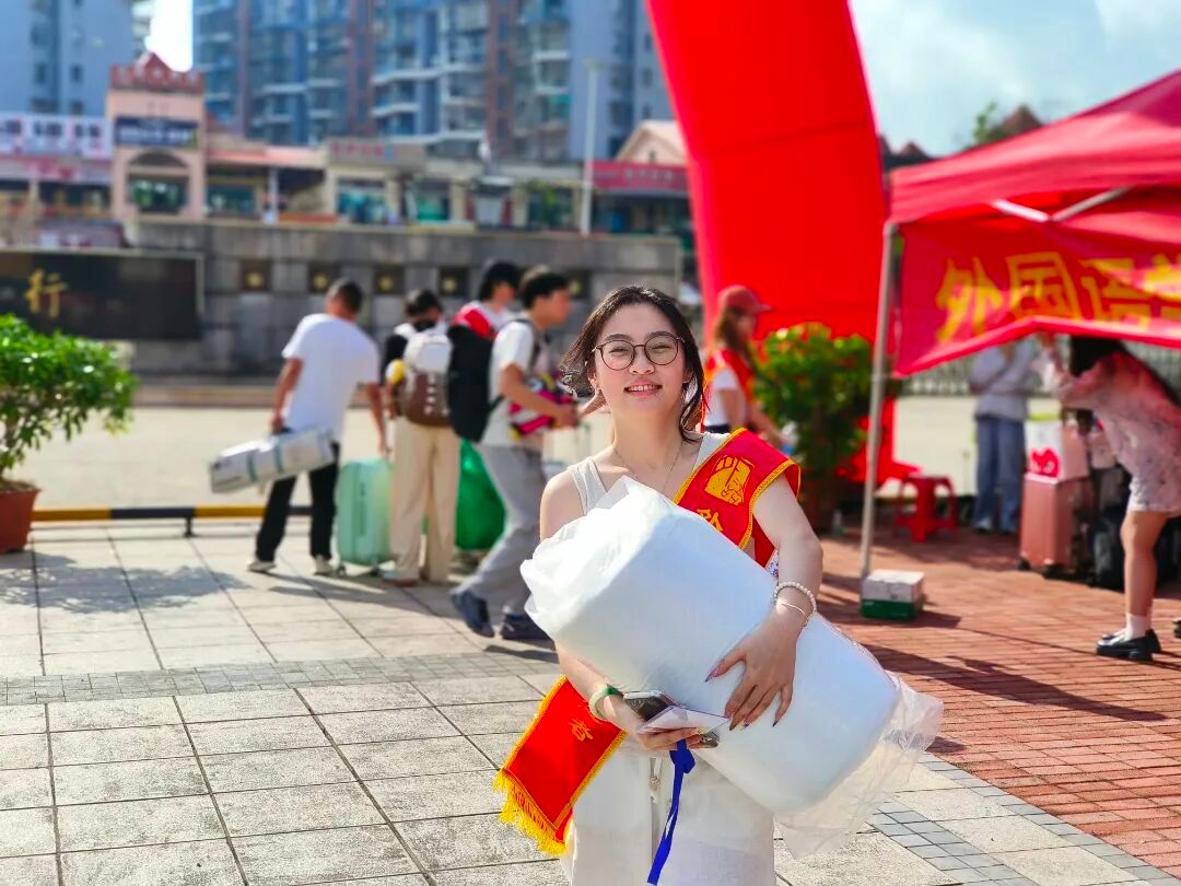 为帮助新同学高效完成报道手续,确保迎新工作有序进行,校党委书记吴访益、校长程灵深入迎新一线,与新生及家长亲切交流,热烈欢迎他们的到来,并对积极参与迎新工作的志愿者们表示慰问。志愿者们一早到达迎新现场,协同合作,精心筹备,热情洋溢,从主动帮新生搬运行李到耐心介绍校园环境,环环相扣为新同学提供一站式贴心服务,全力保障迎新流程不卡壳、服务不缺档,让新生感受来自外院的温暖与体贴。