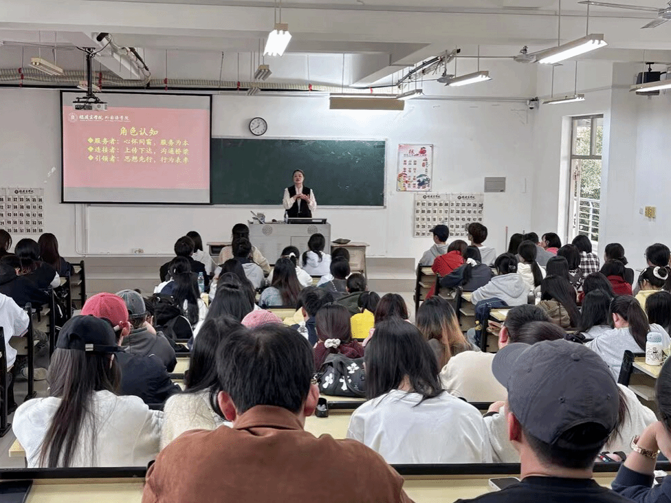 活动中,杨爱娥老师围绕学生干部的角色认知与核心能力和在场同学展开交流。她要求同学们要明确“服务者、连接者、引领者”这三重身份,要心怀同窗、以服务为本、承担好上传下达的沟通桥梁职责,更要提高自我要求,做到思想先行、做好行为表率。希望各班级、各团支部主要学生干部能从班级日常管理、学风建设路径、活动组织策划多个方面,有效提高工作方法和技巧,提升工作实效,强化责任意识,提升自身综合素质,以更积极的主人翁姿态参与学院发展建设。