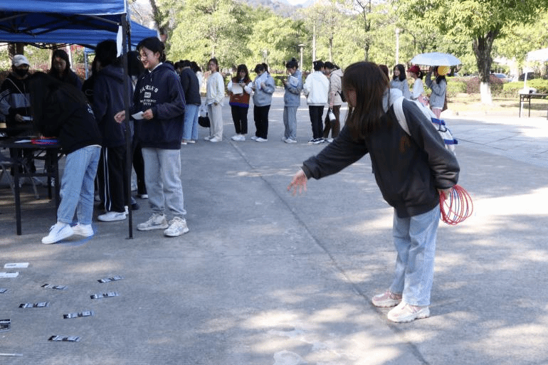 活动共设立“圈圈乐”、“步步生花”、“我要自定义”等七个打卡项目,参与者可通过集齐所有活动印章来兑换额外奖品。活动现场人头攒动,热闹非凡。“圈圈乐”奖品丰富,玩法别有风趣,得到同学们的一致称赞,伴随着欢声笑语,红蓝两色的圆圈以完美的弧线正好把奖品圈住。塑料圈满场纷飞,同学们准备、瞄准、套圈,将自己所想要的奖品“收归囊中”。现场观众也在热情地为参与者们出谋划策,帮助他们收获战利品,整个现场都沉浸在热情高涨的气氛中。签名墙更是填满了同学们的心愿以及对女生们的关怀与祝福。